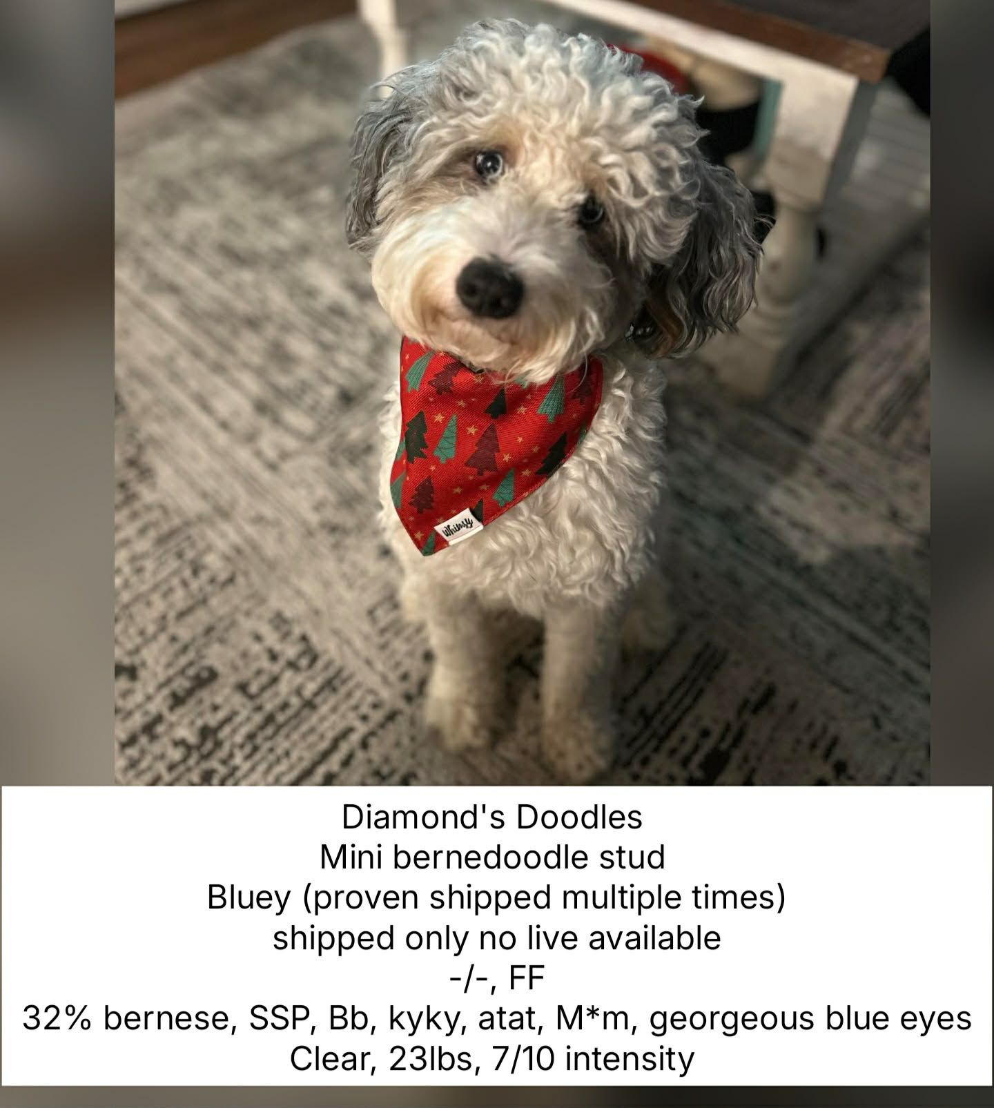 - Shipped Semen: $300 per shipment
